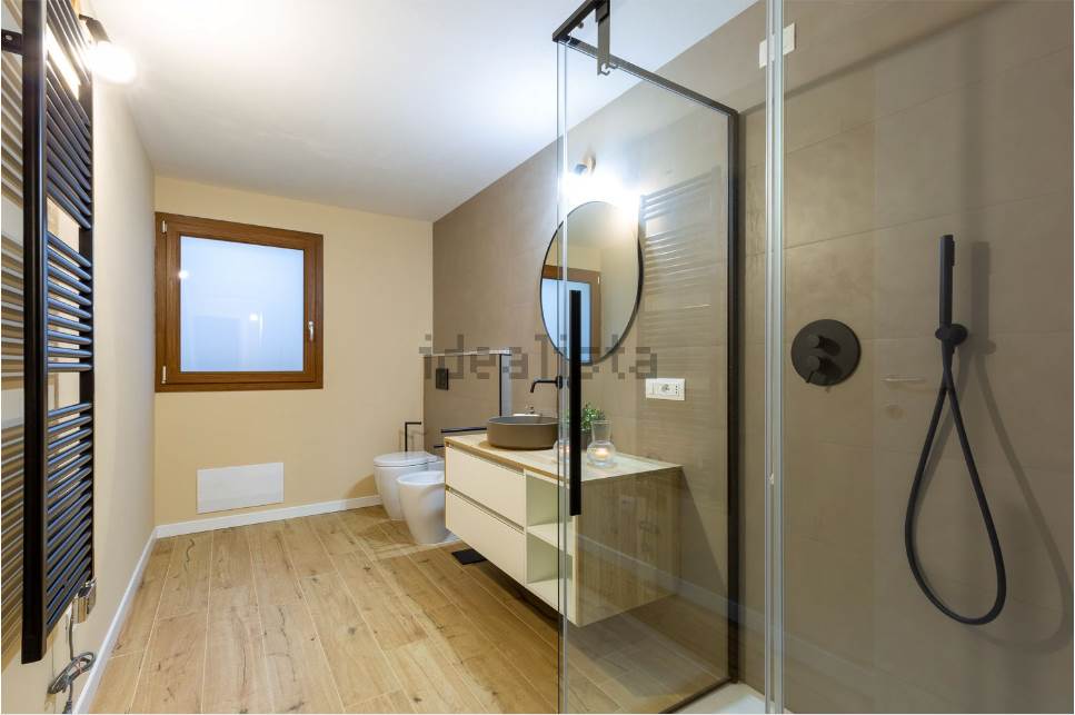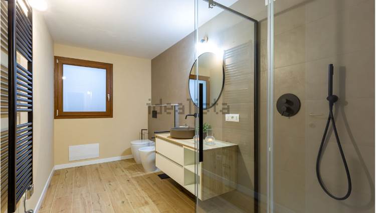 Con scala interna accediamo all'altra zona notte dove troviamo altre due camere matrimoniali, una camera singola, una lavanderia/stireria, il bagno e un ampio cavedio dove trovano alloggio lo scaldabagno a pompa di calore Nuos, l'inverter dei pannelli fotovoltaici con le batteria di accumulo.