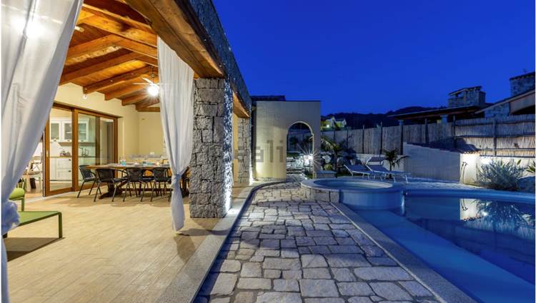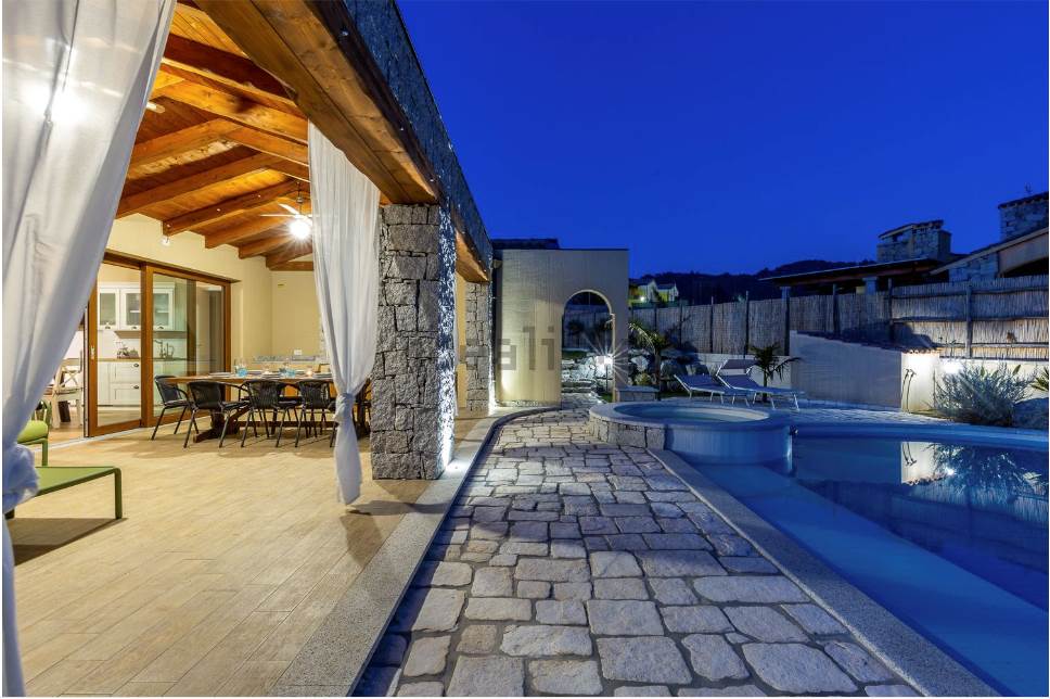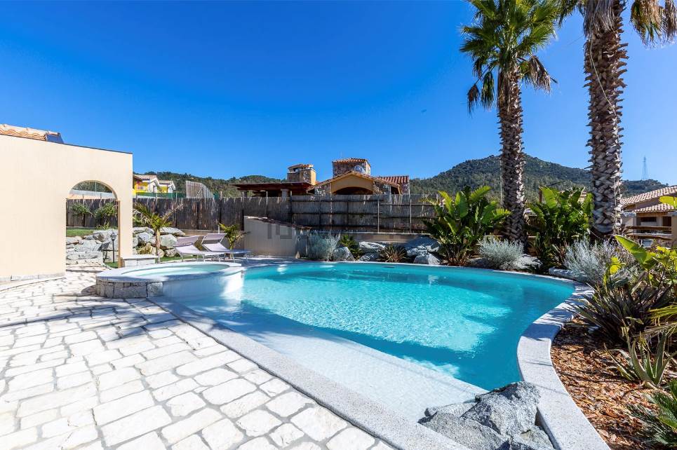 Su di un lotto di 650 mq si propone in vendita una splendida villa interamente arredata pronta all'uso. L'immobile con ottime rifiniture si sviluppa su due livelli piano terra con un ampio soggiorno con zona cottura a vista, disimpegno con camera matrimoniale, singola, dispensa e bagno. Dal soggiorno con un ampia porta scorrevole si accede al portico di 50 mq con zona barbecue in muratura, fronte portico la fantastica piscina con zona idromassaggio.