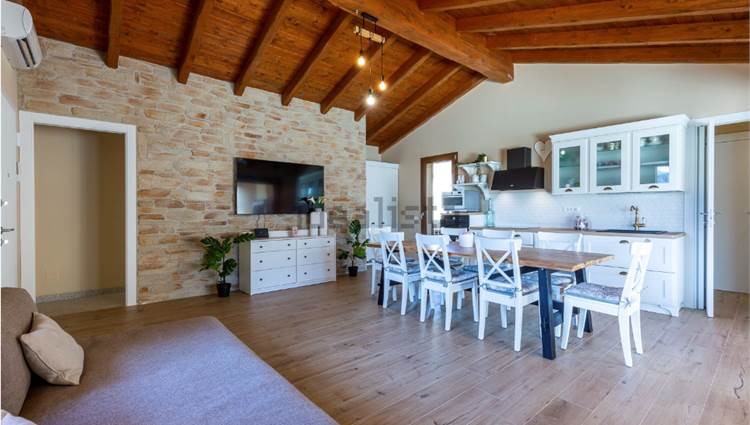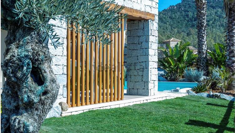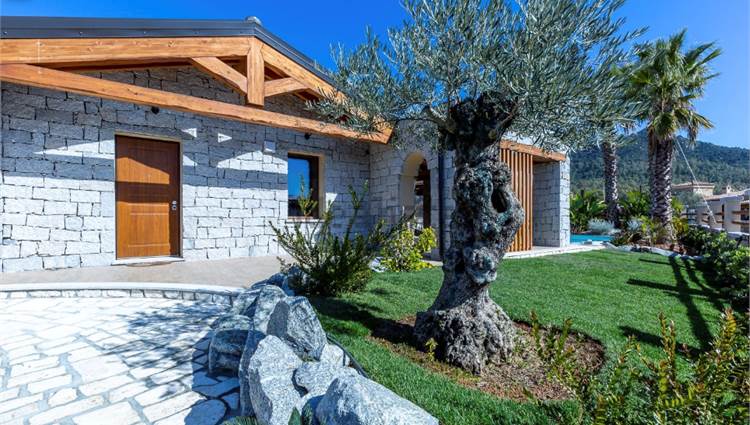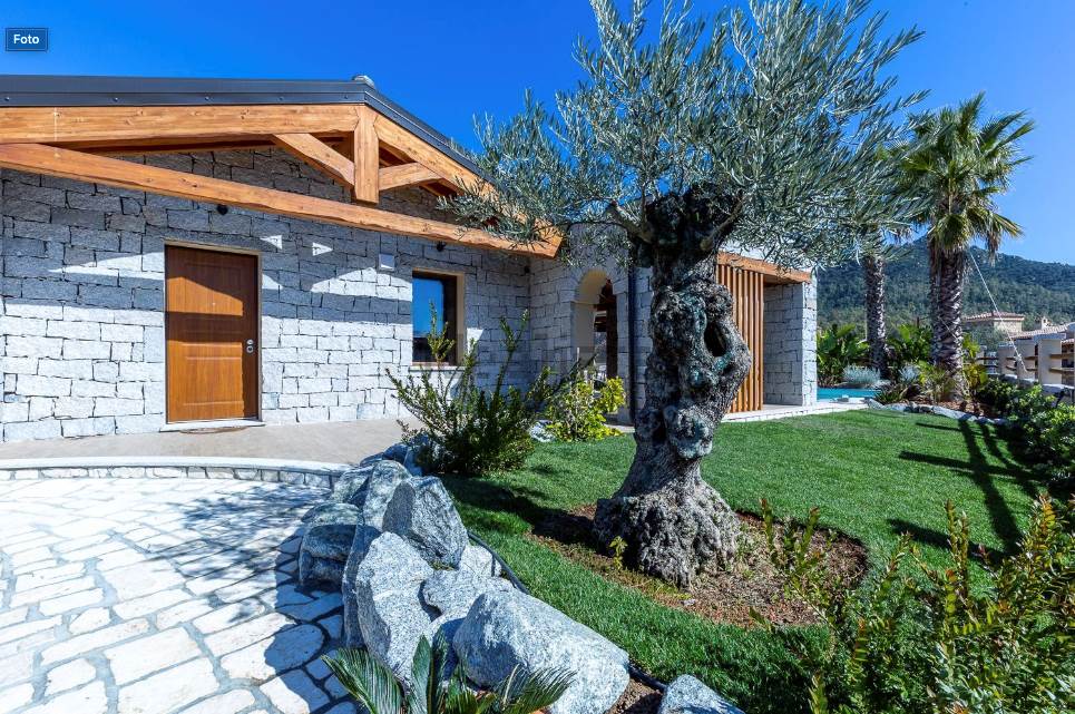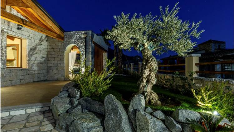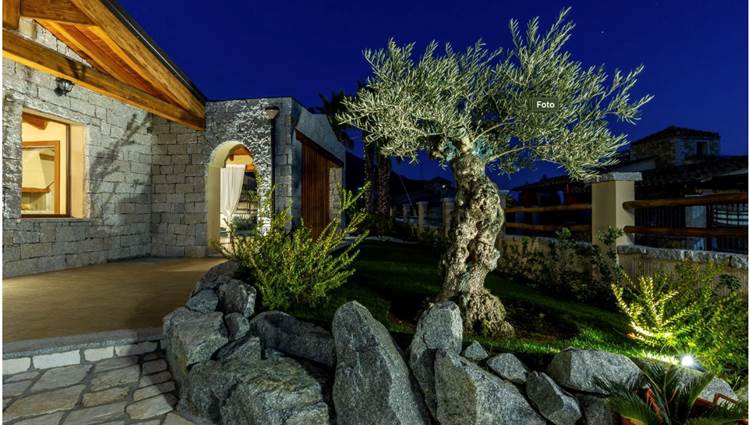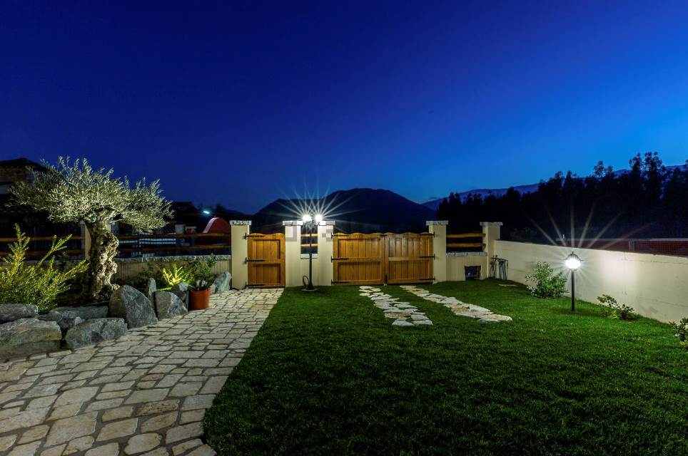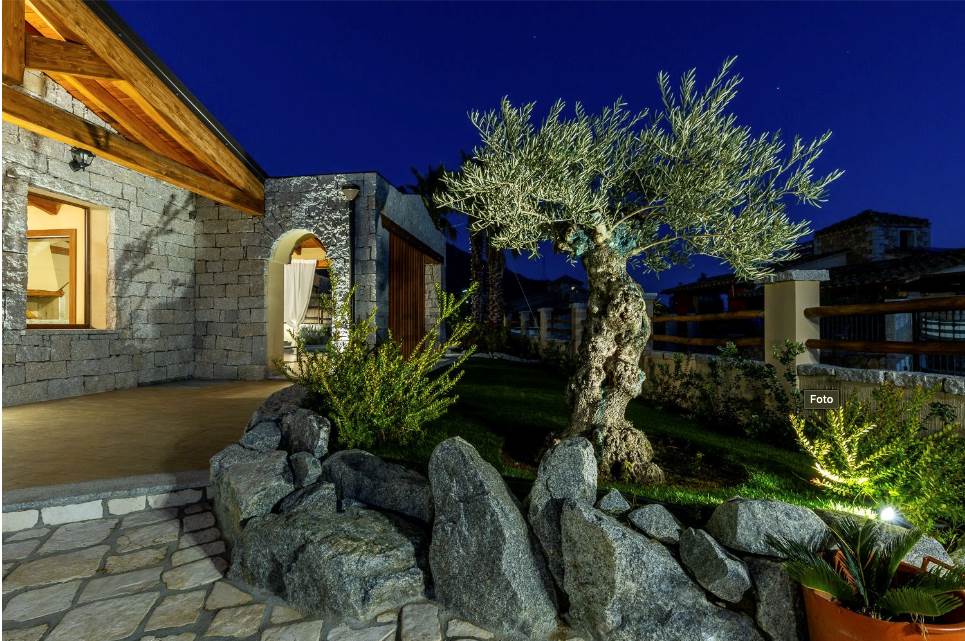 Pompe di calore in ogni ambiente, doppio posto auto e giardino sui quattro lati con prato inglese, due alte palme e un bellissimo ulivo.